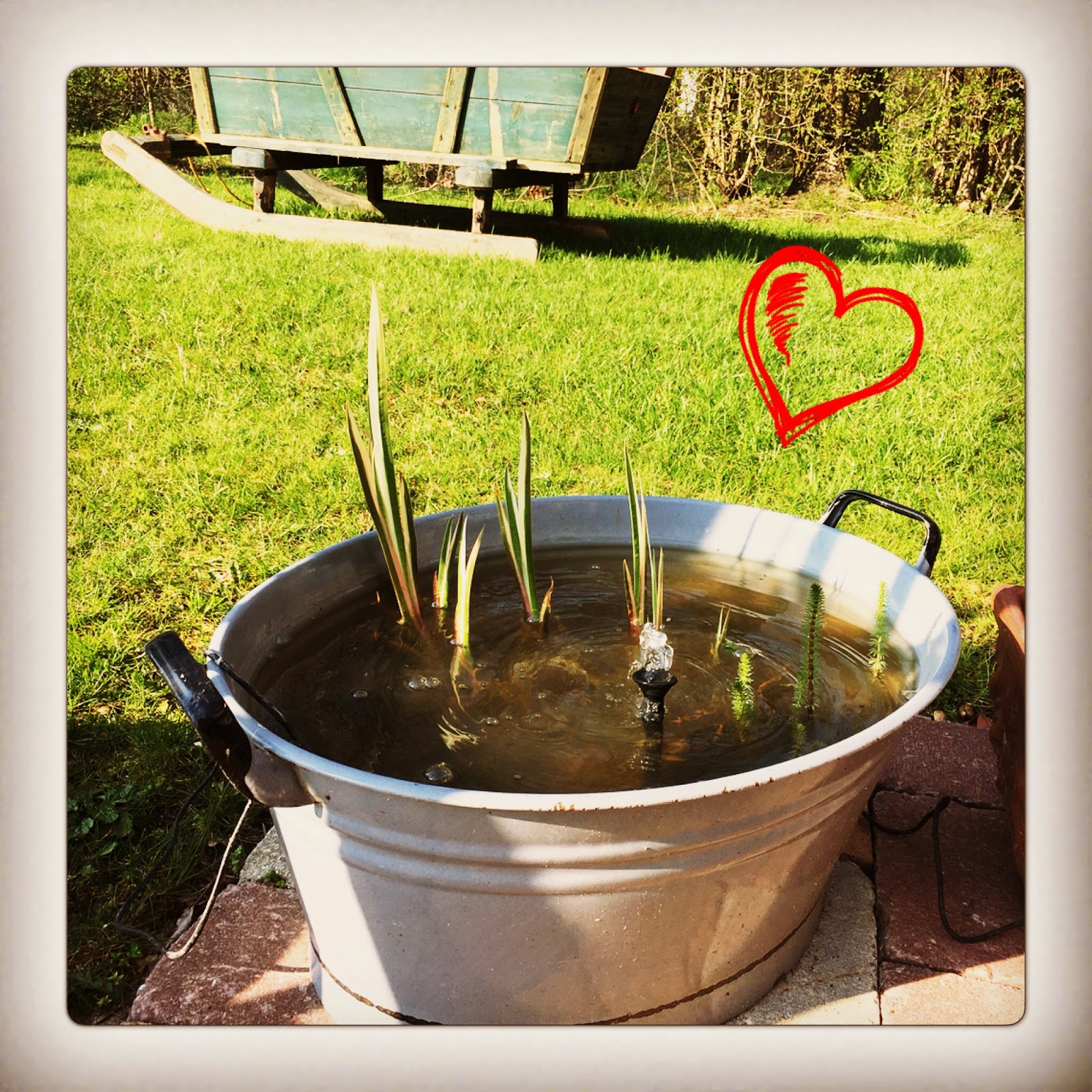 Nun bin ich auf der Suche nach neuer Inspiration, um meinen Miniteich noch weiter aufzupimpen (vielleicht kann mir ja der ein oder andere von euch helfen … Kommentare sind natürlich willkommen).